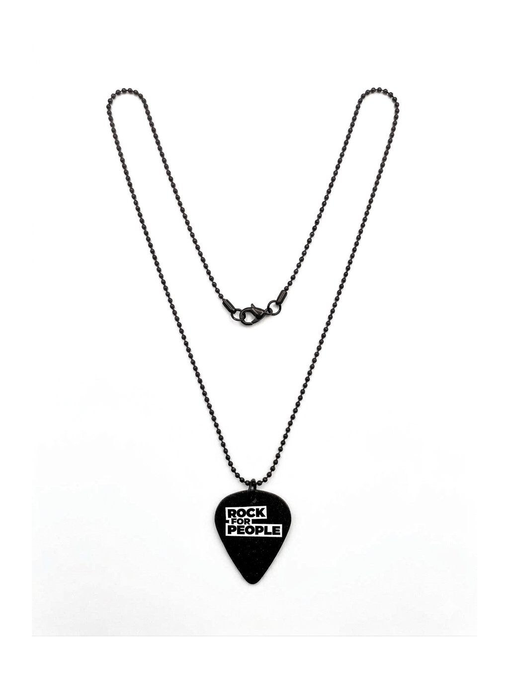 Základem šperku je klasické trsátko potištěné z jedné strany oficiálním logem Rock for People a z druhé ilustrací hada od Lukáše Króla. Trsátko je zavěšeno na černém kuličkovém řetízku z nerezové oceli.